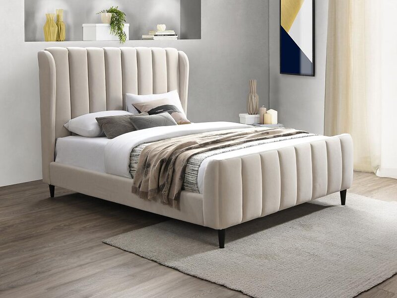 Vente Unique Panneaux muraux tête de lit 200 cm Velours Beige BARTEL de Pascal Morabito