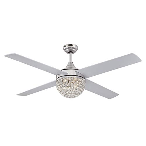 Westinghouse Lighting 72206 Kelcie, Ventilateur de plafond contemporain avec lampe et télécommande, 132 cm, finition nickel brossé, abat-jour à fleuron cristallin