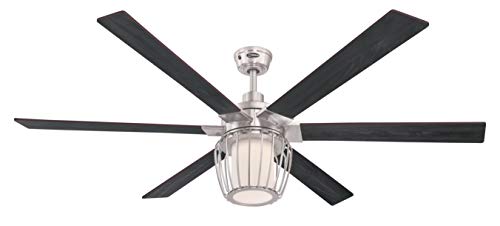 Ventilateur de Plafond Westinghouse Lighting Willa de 153 cm en Nickel Brossé avec Télécommande d'éclairage et de Ventilateur, Lampe LED à Intensité variable, Verre Dépoli, Abat-Jour Cage