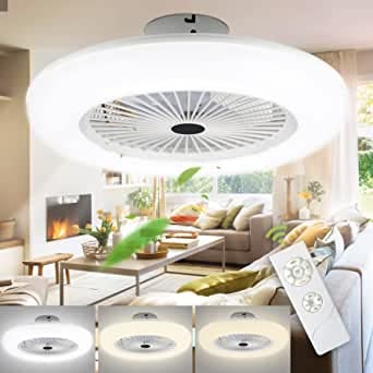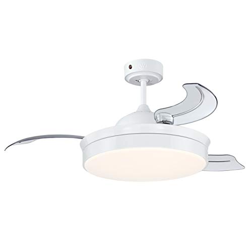 KPUY Ventilateur de plafond avec lumière et télécommande, ventilateur de plafond avec pales invisibles en ABS, lumière LED dimmable en 3 couleurs, moteur DC silencieux réversible à 6 vitesses