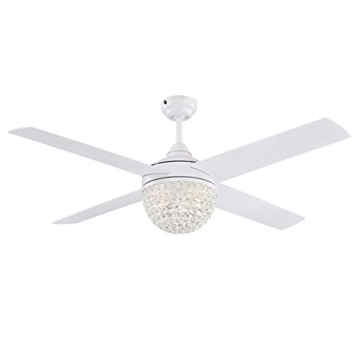 Westinghouse Lighting 72262 Kelcie, Ventilateur de plafond contemporain avec lampe et télécommande, 132 cm, finition en blanc, abat-jour à fleuron cristallin