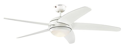 Ventilateur de Plafond d'Intérieur Westinghouse Lighting CARLA de 117 cm en Blanc avec Télécommande d'éclairage et de Ventilateur, Luminaire LED à Intensité variable avec Verre Opale Dépoli