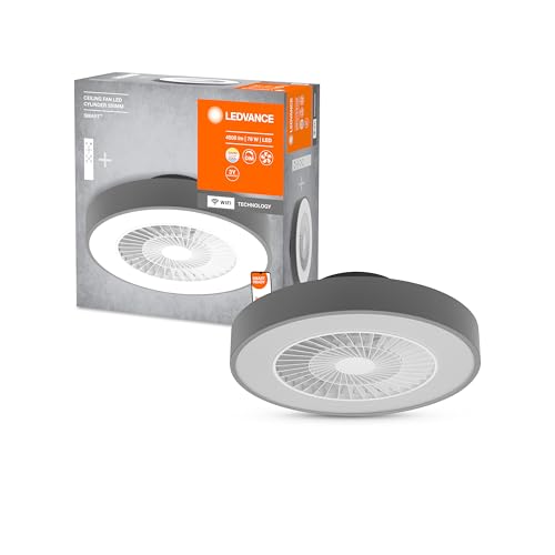 LEDVANCE Smart WiFi ventilateur de plafond à LED, forme cylindrique, gris, gradable, vitesse d'air réglable, télécommande incluse, contrôlable via l'appli et l'assistant vocal, installation facile