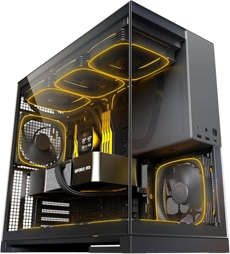 Geometric Future Tour intermédiaire M5 en verre trempé, boîtier de jeu E-ATX/ATX, acier de 1,2 mm, type C, panneaux sans outils, support radiateur 420/360, ventilateur ARGB PWM 140 m x 5 pré-installés