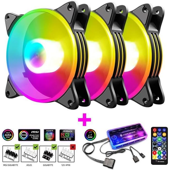 RGB pack de 3 Ventilateur de boîtier PC 120 mm Modes déclairage silencieux Rythme musical 5V ARGB Carte mère adressable SYNC