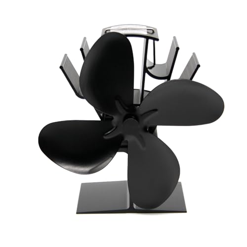 JEXNOVASHOP-Magnétiques Ventilateur Poele à Bois, Silencieux Ventilateur Cheminée Alimenté à la Chaleur 4 Pales Ventilateur de Poêle avec Plaque de déviation modifiée pour Cheminée Tuyau/Poêle à Gran
