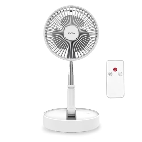 Jocca - Ventilateur sur pied avec télécommande, batterie rechargeable 7 200 mAh, 3 vitesses, hauteur réglable de 36 à 97,5 cm, pliable, avec télécommande et chargeur USB