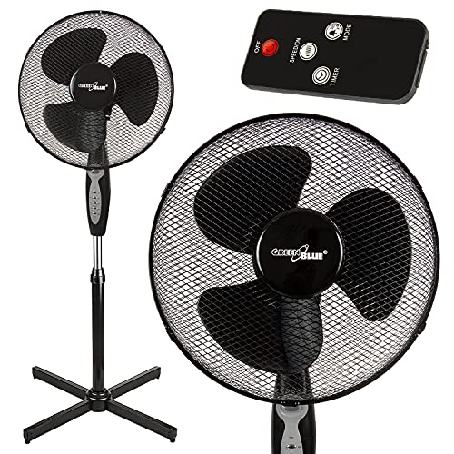 Green Blue GB580 Ventilateur sur pied avec télécommande 40 W 3 niveaux de vitesse 40 cm Faible niveau sonore Oscillation Ventilateur de sol avec minuterie 7,5 h Noir