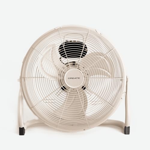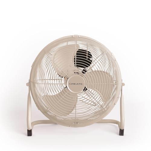 CREATE / AIR FLOOR RETRO/Ventilateur de sol industriel sable / 16 pouces, débit d'air puissant, 3 vitesses, silencieux, léger, pieds antidérapants.