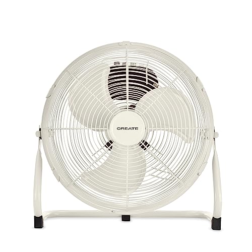 CREATE / AIR FLOOR RETRO/Ventilateur de sol industriel blanc cassé / 16 pouces, débit d'air puissant, 3 vitesses, silencieux, léger, pieds antidérapants.