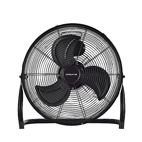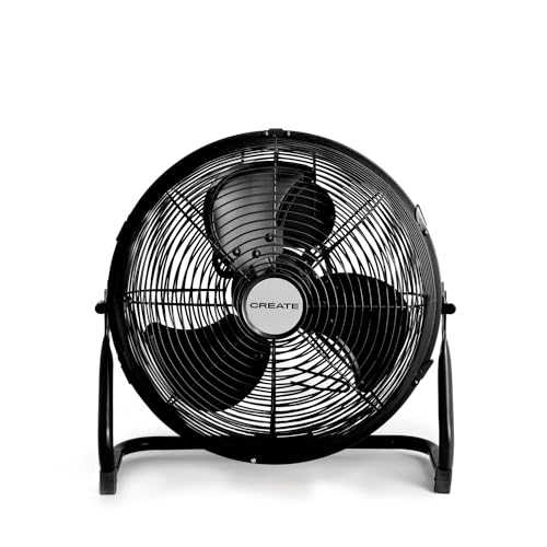 CREATE / AIR FLOOR RETRO/Ventilateur de sol industriel noir / 16 pouces, débit d'air puissant, 3 vitesses, silencieux, léger, pieds antidérapants.