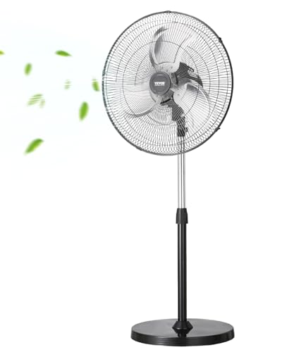 VEVOR Ventilateur sur pied industriel, 450 mm, ventilateur oscillant à 90°, réglables en hauteur, 3 vitesses réglables, débit d'air max. 5400 CFM, pour chambre à coucher, salon, maison, bureau, noir