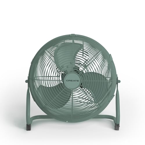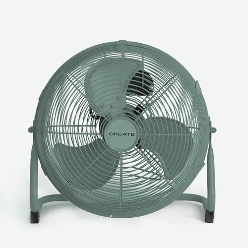 CREATE / AIR FLOOR RETRO/Ventilateur de sol industriel vert sauge / 16 pouces, débit d'air puissant, 3 vitesses, silencieux, léger, pieds antidérapants.