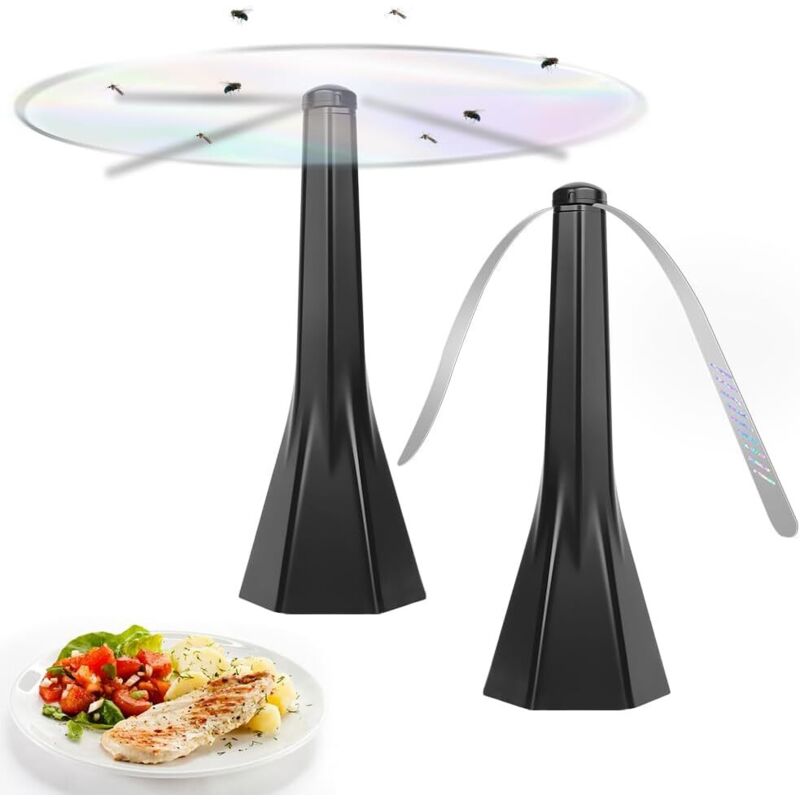 2PCS Ventilateur Ant Mouche, Chasse Mouche de Table, San Produit Chimique, Repousse Mouches avec Lames Réfléchissantes, pour Maison Dîner, Terrasse et Restaurant