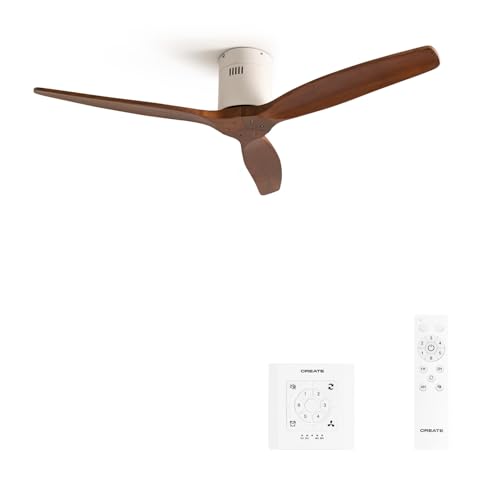 CREATE / WINDCALM M/Ventilateur de plafond ABS avec télécommande et contrôleur mural blanc pales effet bois foncé / 40W, Silencieux, Ø132 cm, 6 vitesses, minuterie, fonction été hiver