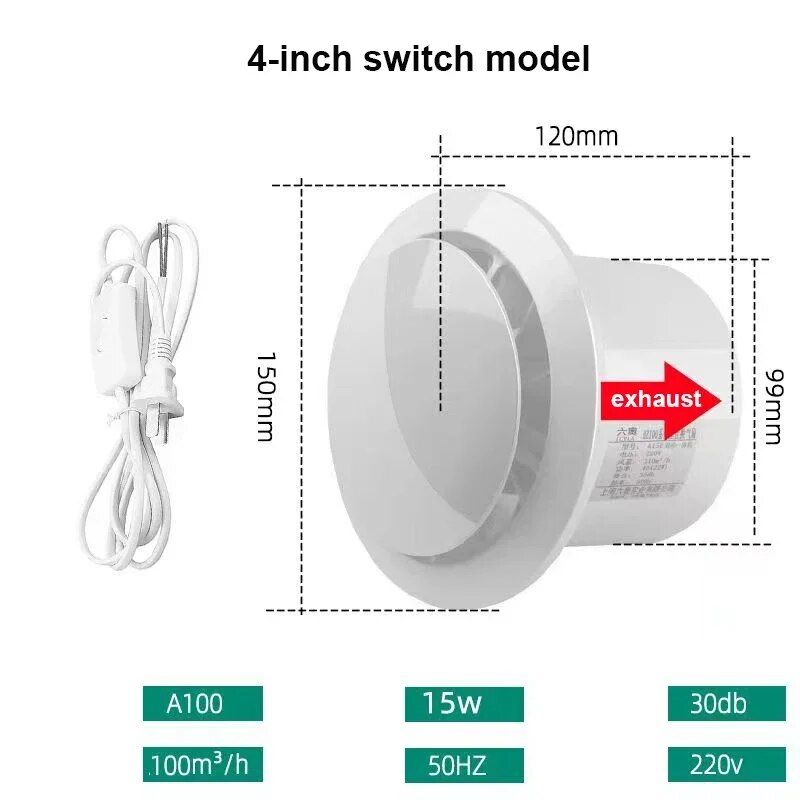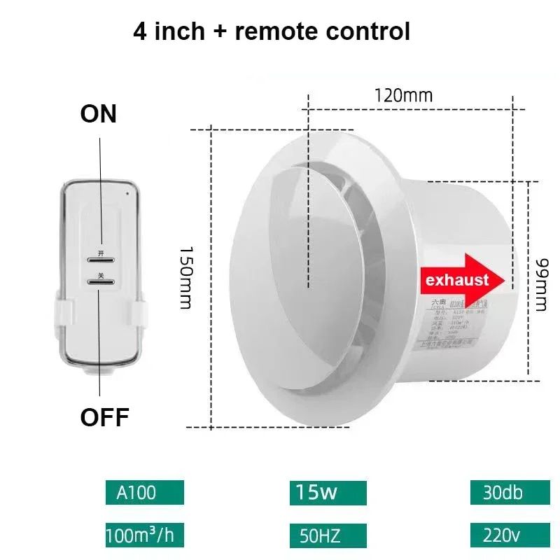 Extracteur de conduit, Ventilateur d'extraction mural silencieux for salle de bain, 4 ou 6 pouces, avec télécommande(4 inch switch)