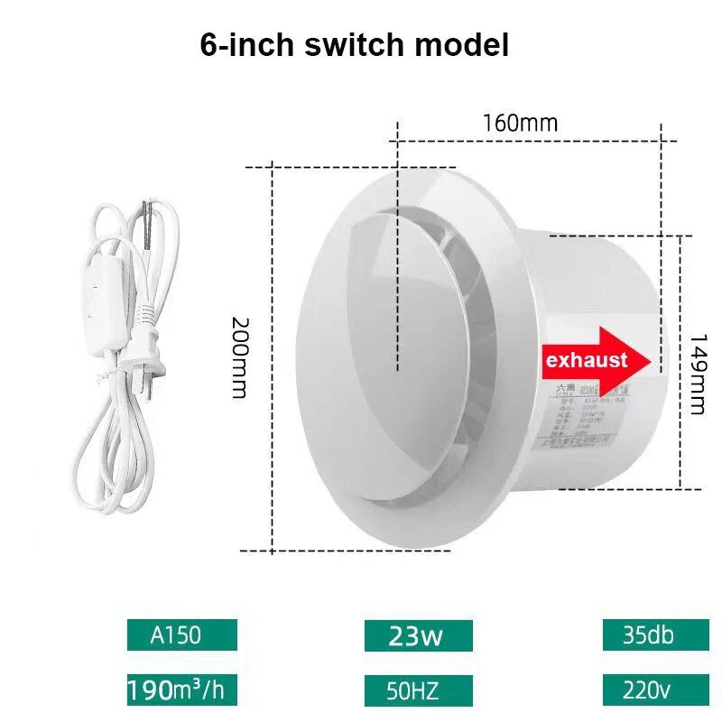 Extracteur de conduit, Ventilateur d'extraction mural silencieux for salle de bain, 4 ou 6 pouces, avec télécommande(6 inch switch)