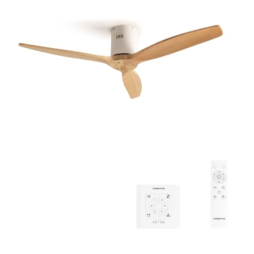 CREATE / WINDCALM M/Ventilateur de plafond ABS avec télécommande et contrôleur mural blanc pales effet bois clair / 40W, Silencieux, Ø132 cm, 6 vitesses, minuterie, fonction été hiver