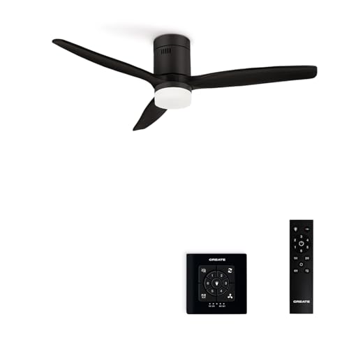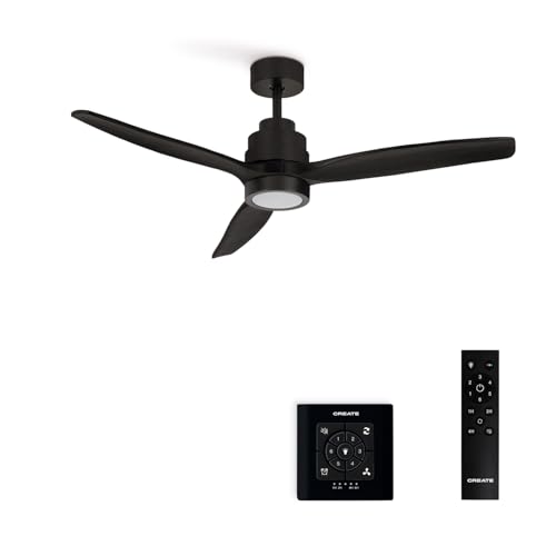 CREATE / WINDCALM M/Ventilateur de plafond ABS avec télécommande et contrôleur mural noir / 40W, Silencieux, Ø132 cm, 6 vitesses, minuterie, fonction été hiver