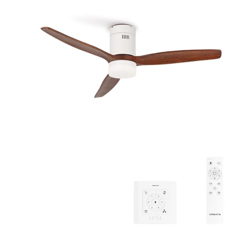 CREATE / WINDCALM M/Ventilateur de plafond ABS avec lumière et télécommande et contrôleur mural blanc pales effet bois foncé / 40W, Silencieux, Ø132 cm, 6 vitesses, minuterie, fonction été hiver