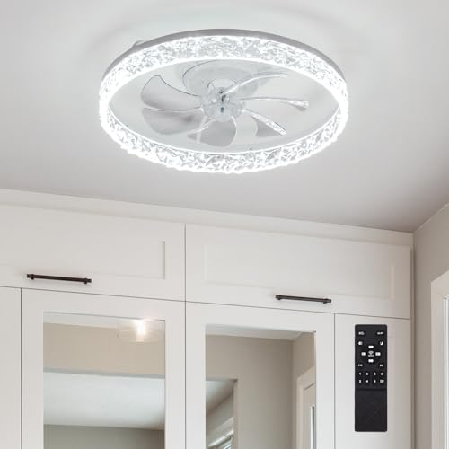 Ventilateur de Plafond Mini Blanc avec Lumière - 3 Vitesses, Gradation Continue, Faible Bruit, Design Caché, 85-265V, 30W