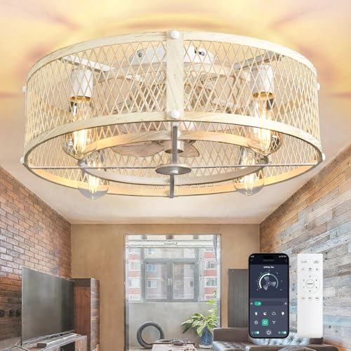 Depuley Ventilateur de plafond avec cage et éclairage: ventilateur de plafond blanc de 20 pouces contrôle APP pour chambre à coucher - Ventilateur de cuisine style fermier avec éclairage
