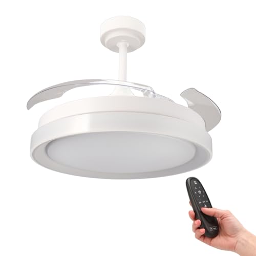 Sararoom 100cm Ventilateur de Plafond avec Lumiere, Ventilateur de Plafond LED Dimmable avec Télécommande, Hélice à 3 pales, 6 vitesses, 3000K~6500K Modernité Ventilateur Plafond (Blanc)