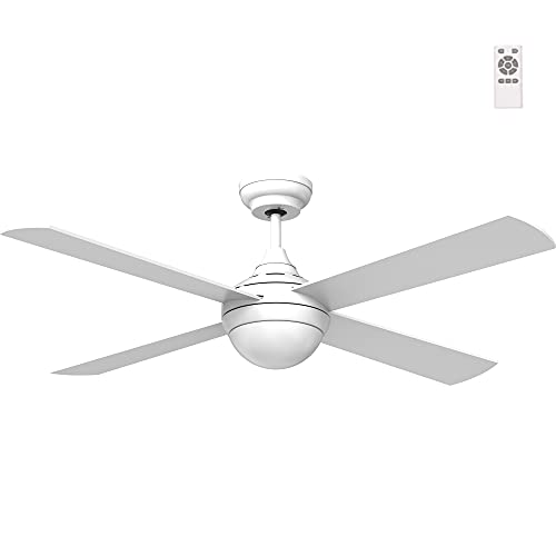 Ventilateur de plafond blanc à économie d’énergie Raja avec éclairage LED dimmable, Télécommande incluse, 122 cm