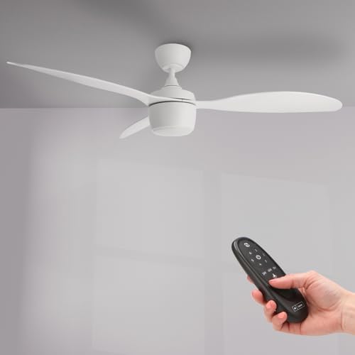 Forrovenco Ventilateur de plafond blanc silencieux avec lumière et télécommande, 132 cm, 3 températures de couleur, minuterie, moteur DC réversible, 3 pales, 3 tiges, terrasse et extérieur
