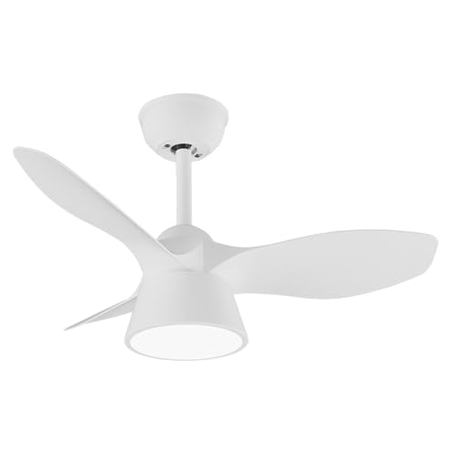 Newday 76CM Petit Ventilateur Plafond Blanc avec Lumiere Dimmable et Télécommande, Moteur DC Silencieux pour Chambre, Salon, Cuisine