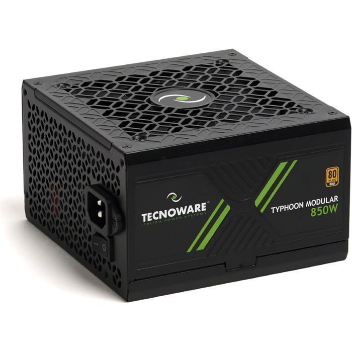 Tecnoware Alimentation Typhoon 850W, 80 Plus Gold, Full Modulaire, Gaming, Ventilateur Silencieux 12 cm, Condensateurs Japonais 105°C, Circuit DC-DC, Câbles Plats