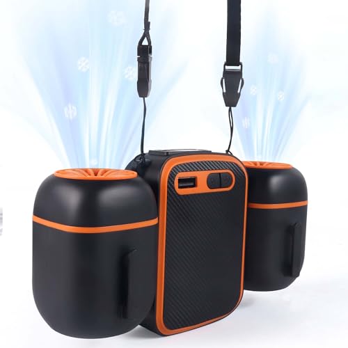 Ventilateur de taille,mini ventilateur portable rechargeable à double canal d'air,étanche et silencieux,avec écran LED,3 vitesses de vent,10000 mAh,idéal pour les voyages,la randonnée et le sport