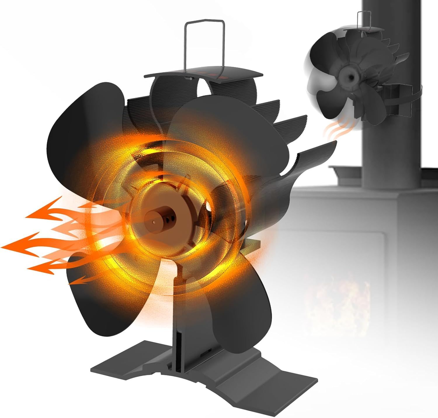 Ventilateur Poele à Bois 6 Pales, Ventilateur de Cheminée Alimenté Par la Chaleur pour Poêle à Bois/Cheminée/Gaz/Bûche/Poêle à Granulés (Noir)