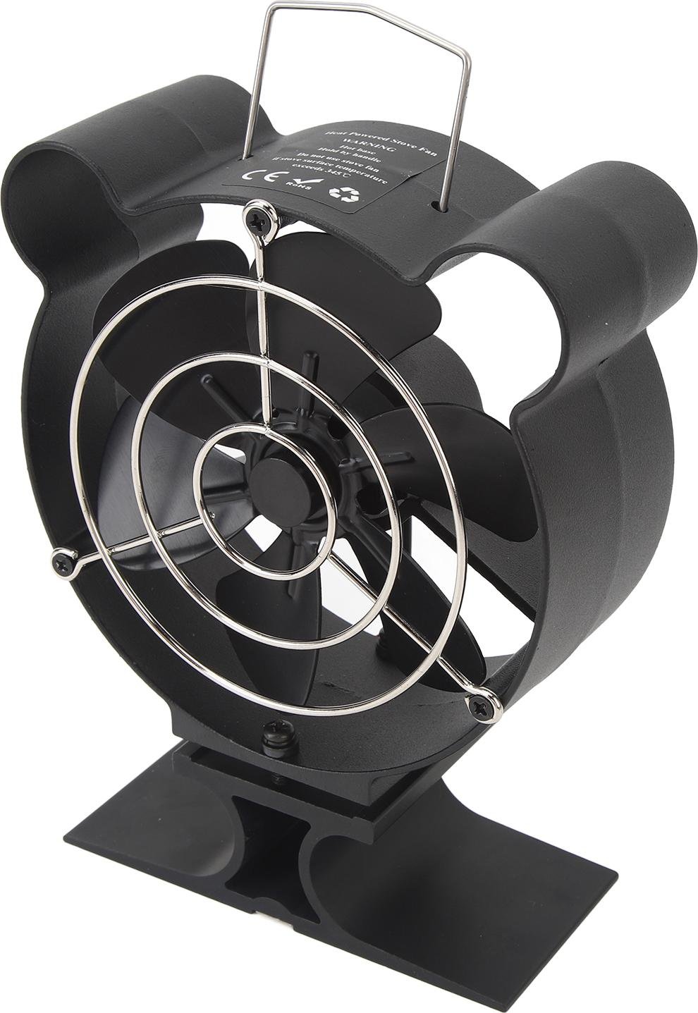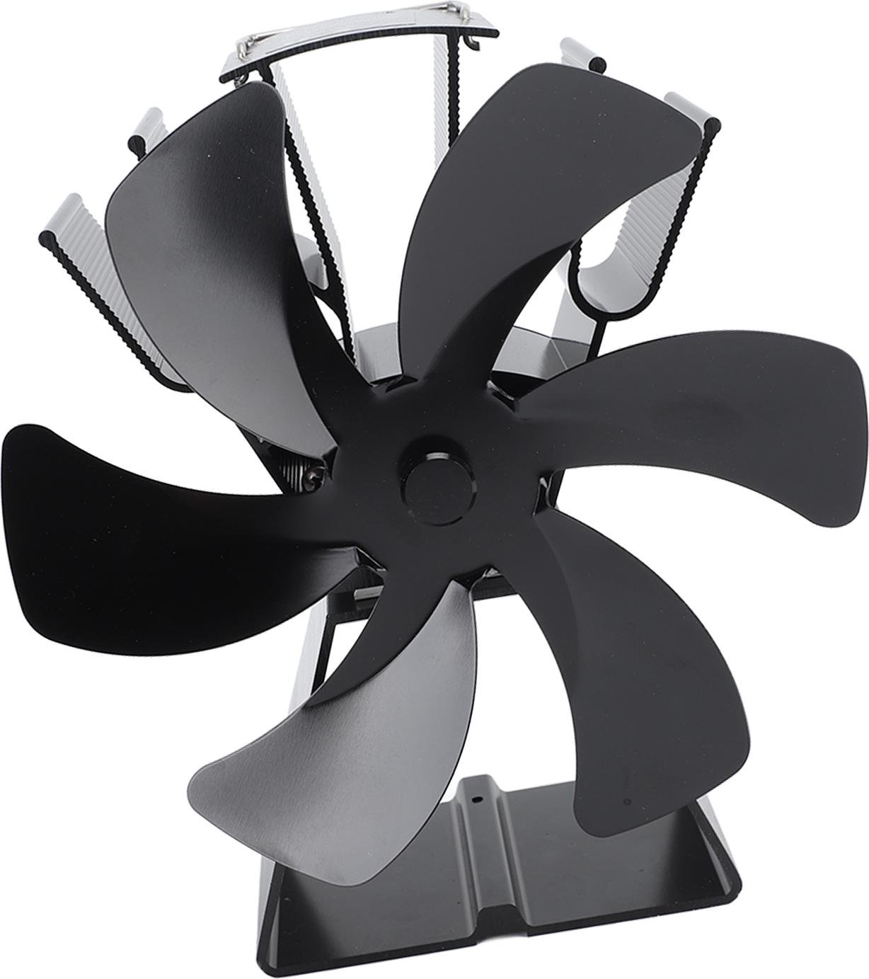 ventilateur de poêle 6 pales en alliage d'aluminium àmanuelle pour poêles à bois et bûches à granulés Noir