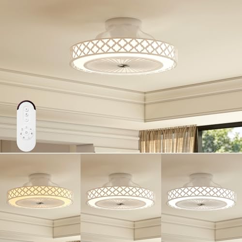 Luyaim Blanc Ventilateur De Plafond Avec Lumière Et Télécommande LED Dimmable Ventilateur Silencieux Plafond Réversible DC Moderne Pour Chambre Salon Plafonnier Ventilateur Design-B||60CM