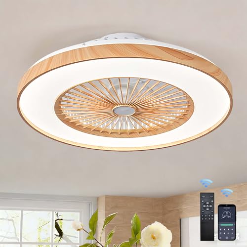Caufloce Petit Lampe Ventilateur Plafond Moderne Time Réversible Ventilateur Plafond Avec Lumiere 6 Vitesses Dc Dimmable Silencieux Ventilo Plafond Avec Lumière Pour Chambre Salon-white woodgrain