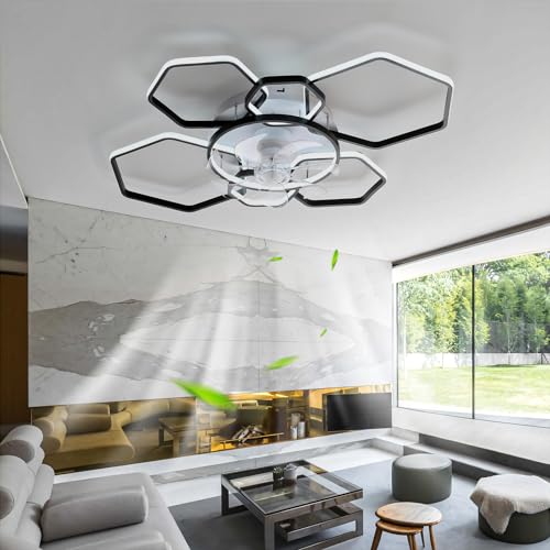Mpayel Ventilateurs de plafond avec lumières - Ventilateur de plafond d'intérieur à profil bas de lumière et commande à distance/APP, DC Réversible Ventilateur de plafond moderne pour chambre(Noir)