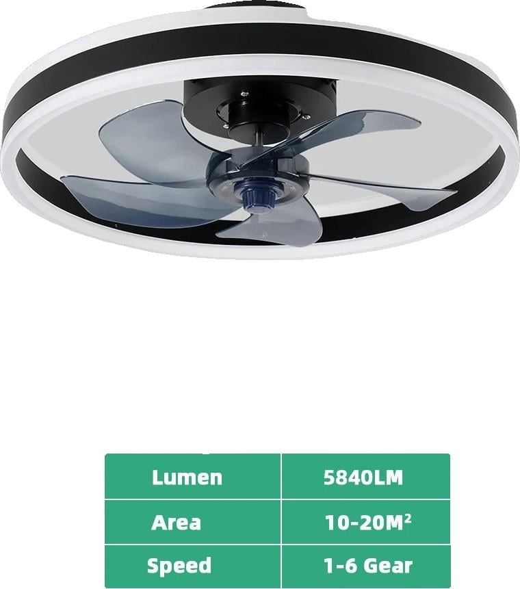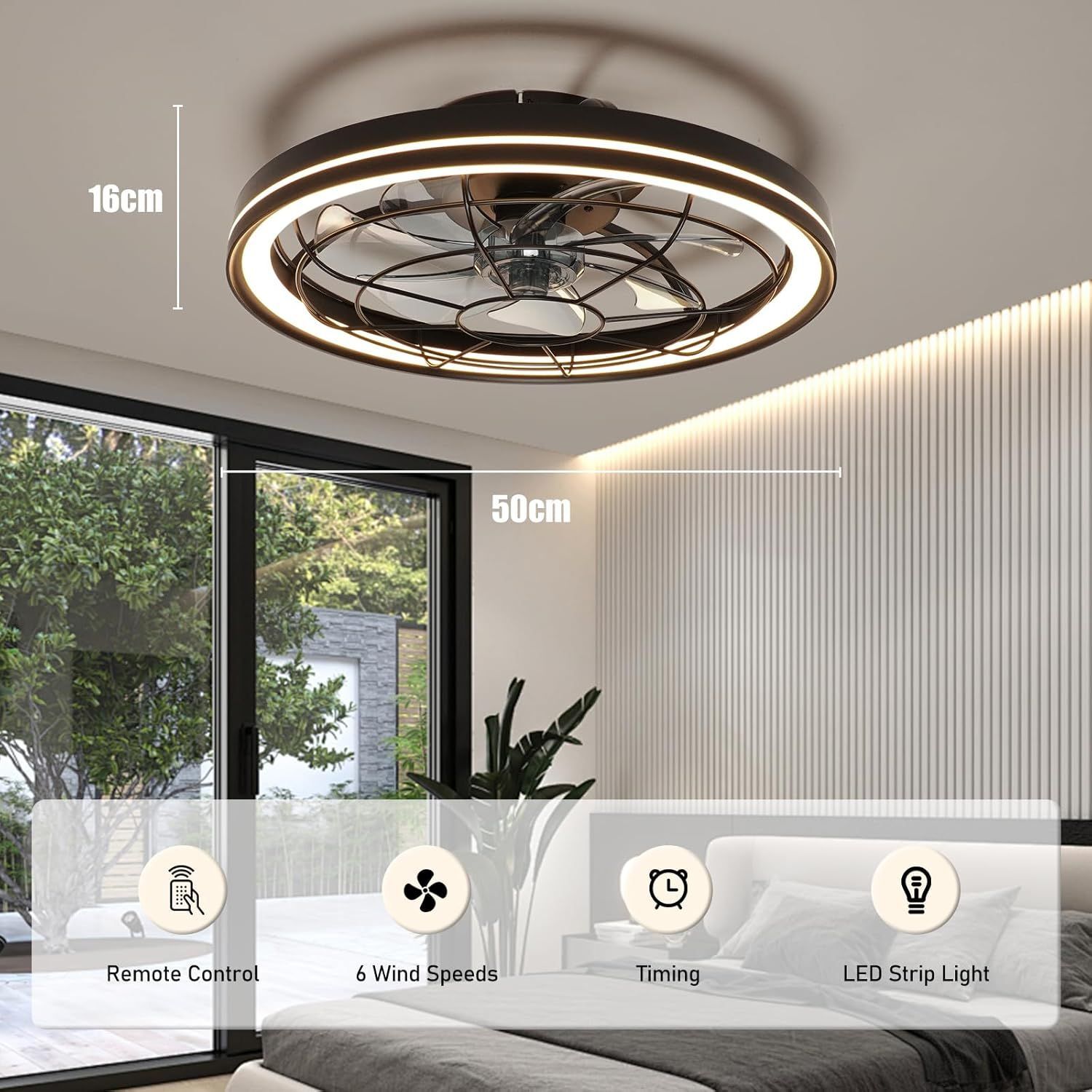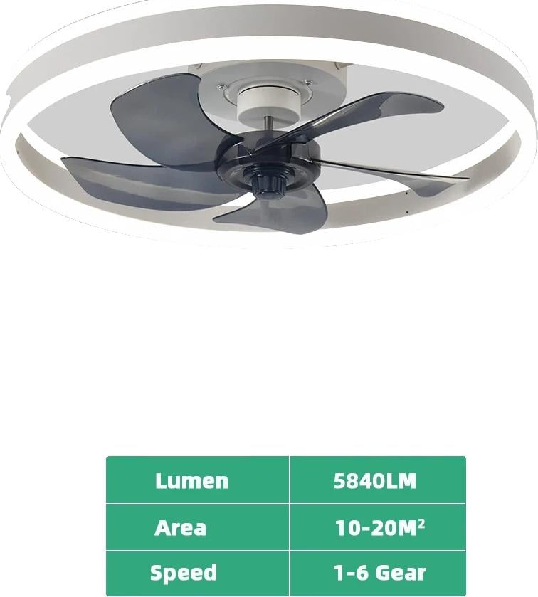 Ventilateur de plafond moderne à encastrer avec lumières et télécommande – Ventilateur de plafond réversible à LED sans pales à intensité variable à 6 vitesses pour cuisine, salon, style ferme, profil
