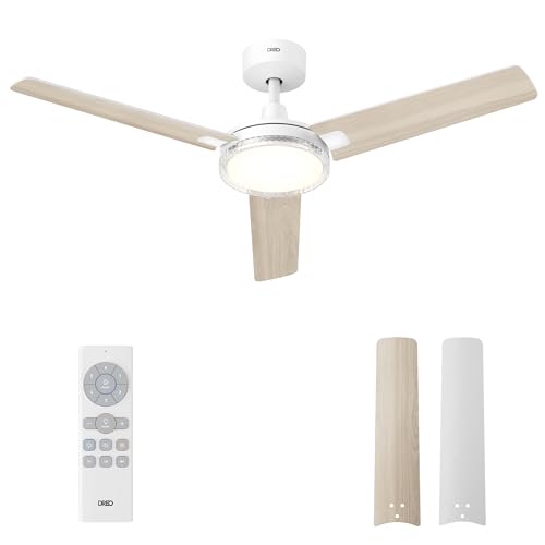 DREO ventilateur de plafond avec lumière et télécommande 132 cm, ventilateur blanc, 5 températures de couleur CCT, LED dimmable 6 niveaux, 6 vitesses, moteur CC réversible silencieux, minuterie 1/4/8h
