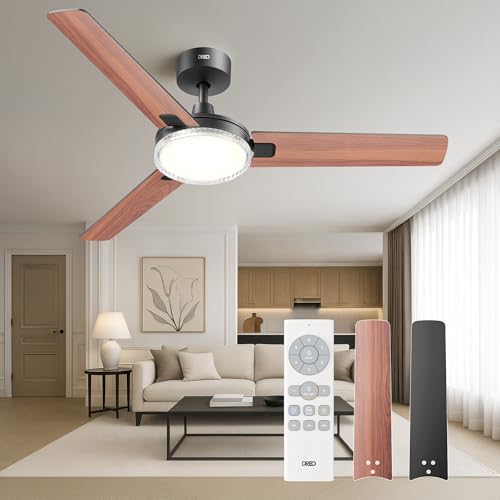 DREO ventilateur de plafond avec lumière et télécommande 132 cm, ventilateur noir, 5 températures de couleur CCT, LED dimmable 6 niveaux, 6 vitesses, moteur CC réversible silencieux, minuterie 1/4/8 h