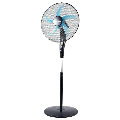 Midea MFS400M0APW0 Ventilateur sur pied 40 W Hauteur réglable Ventilateur silencieux avec télécommande 3 niveaux de vitesse, oscillation 85°, hauteur réglable de 1,1 à 1,3 m, couleur blanche