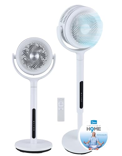 Midea Ventilateur sur pied à 12 vitesses avec télécommande, ventilateur silencieux avec oscillation de 120 ° + 135 °, ventilateur avec minuterie, filtre et double pale, flux d'air jusqu'à 24 m