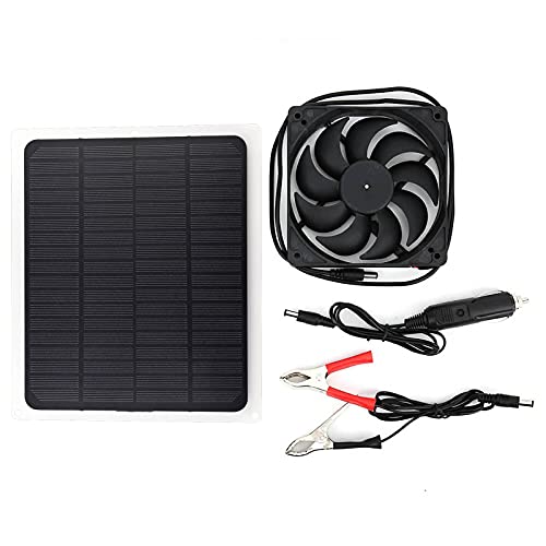 Fockety Ventilateur Solaire D'extérieur étanche de 25 W avec Batterie de 2500 MAh et Minuterie, Idéal pour Abri de Jardin, Poulailler, Serre, Niche pour Chien, etc.