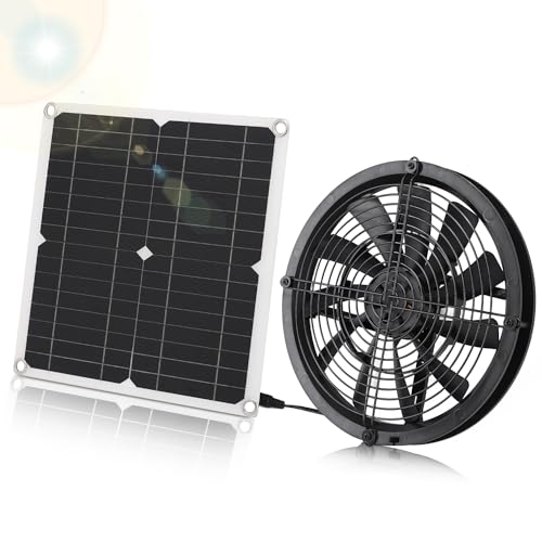 Buachois Ventilateur Solaire d'Extraction pour Serre, Ventilation Puissante Structure Bride Toiture Grange Poulailler Garage Cabane de Jardin