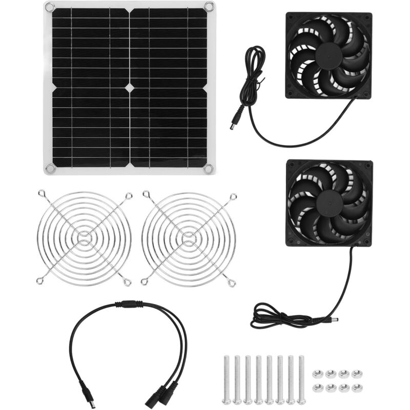 Ventilateur solaire 15 W, panneau solaire étanche et kit de double ventilateurs adapté pour serre extérieure poulailler