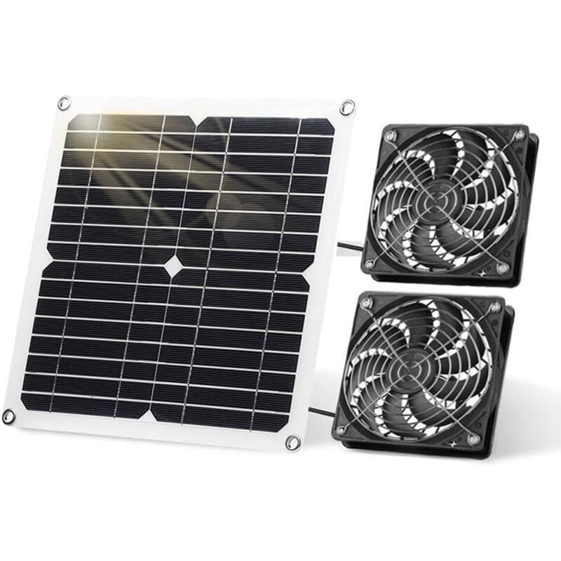 MAMJENNI Kit de Ventilateur Solaire pour Serre, Double Ventilateur de Ventilation alimenté par Panneau Solaire de 25 W, Refroidissement Efficace, étanche IPX65, Ventilateur