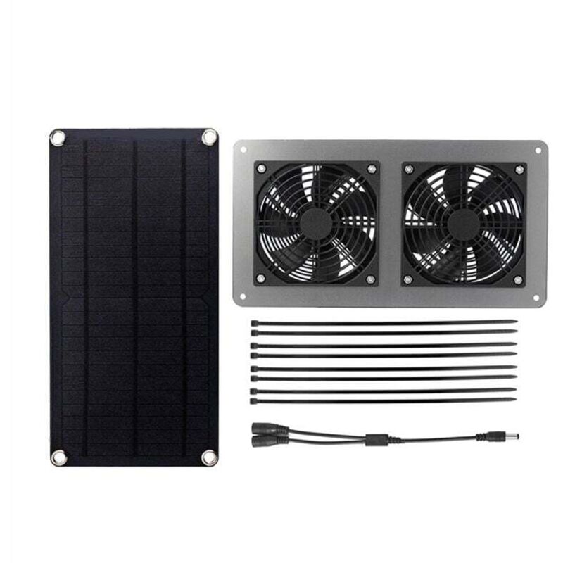 Kit De Ventilateur Solaire, 10W ventilateur solaire pour serre, Double Ventilateur Solaire Portable pour Grenier Serre Poulaillers Abri Animal de