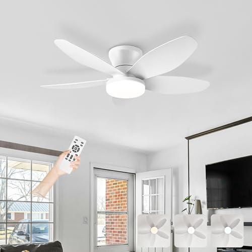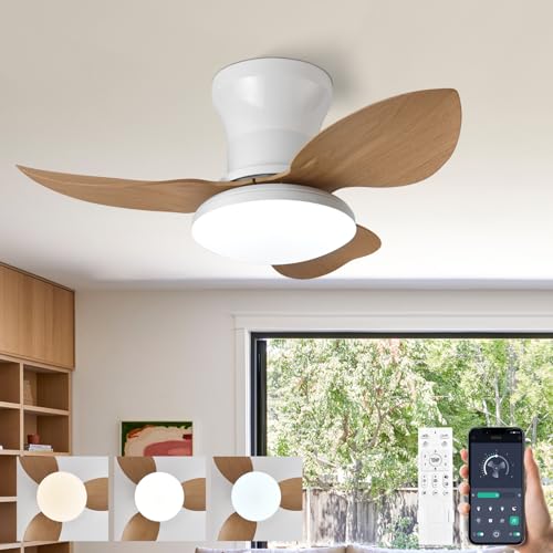 Caufloce Petit Lampe Ventilateur Plafond Moderne Time Réversible Ventilateur Plafond Avec Lumiere 6 Vitesses Dc Dimmable Silencieux Ventilo Plafond Avec Lumière Pour Chambre Salon-white woodgrain