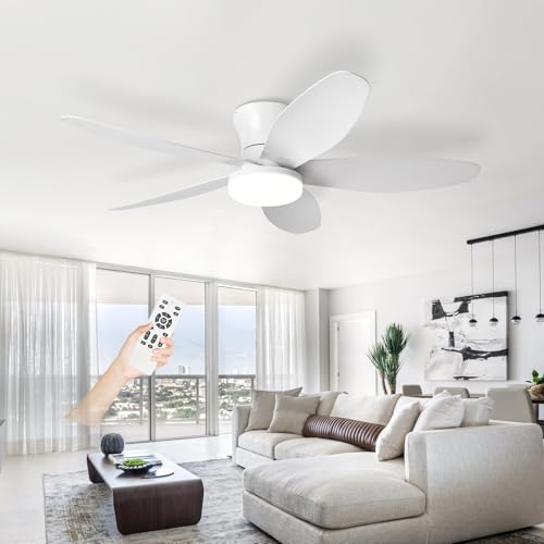 Dobecd Ventilateur De Plafond Avec Lumiere Et Telecommande,Luminaire Ventilateur Plafonnier Silencieux 52cm Timer 2h 6 Speed Lampe Ventilateur Night Light Mode Ventilo Plafond Avec Lumière-E
