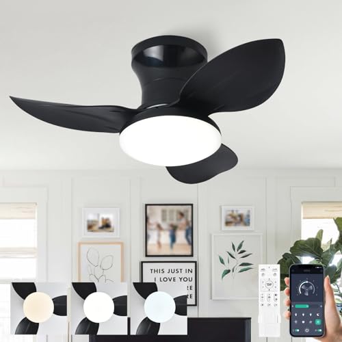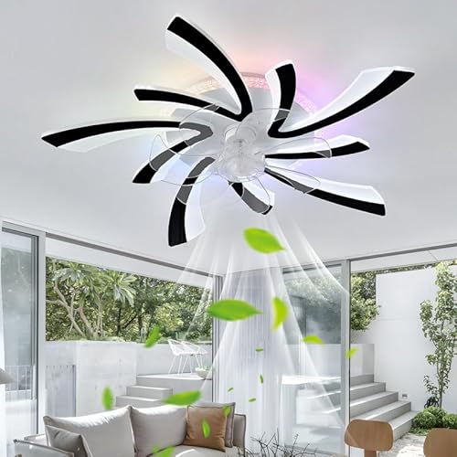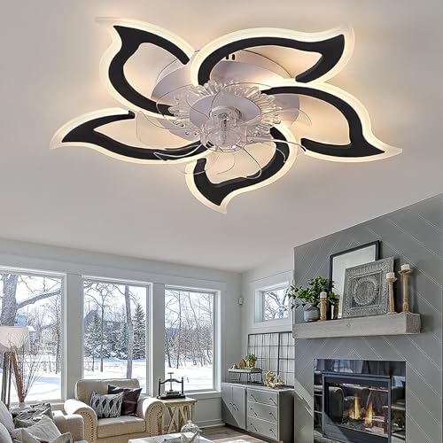 RGB Ventilateur Plafond Avec Lumiere Fleur Dimmable Plafonnier Ventilateur Blanc Timer Luminaire Ventilateur Plafonnier Fonction Mémoire Ventilo Plafond Avec Lumière Intelligent Silencieux Noir
